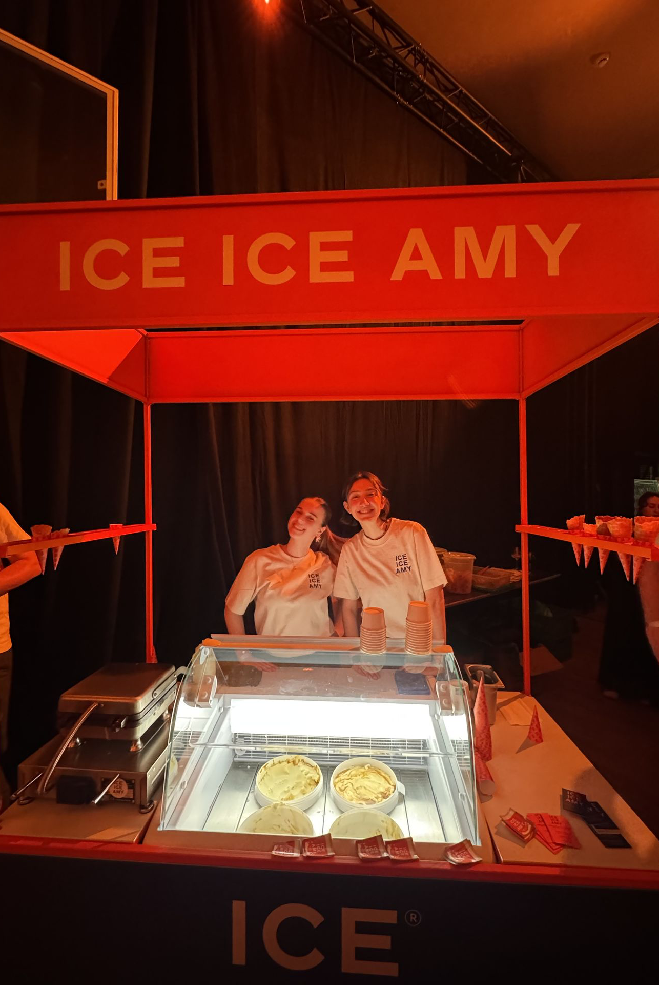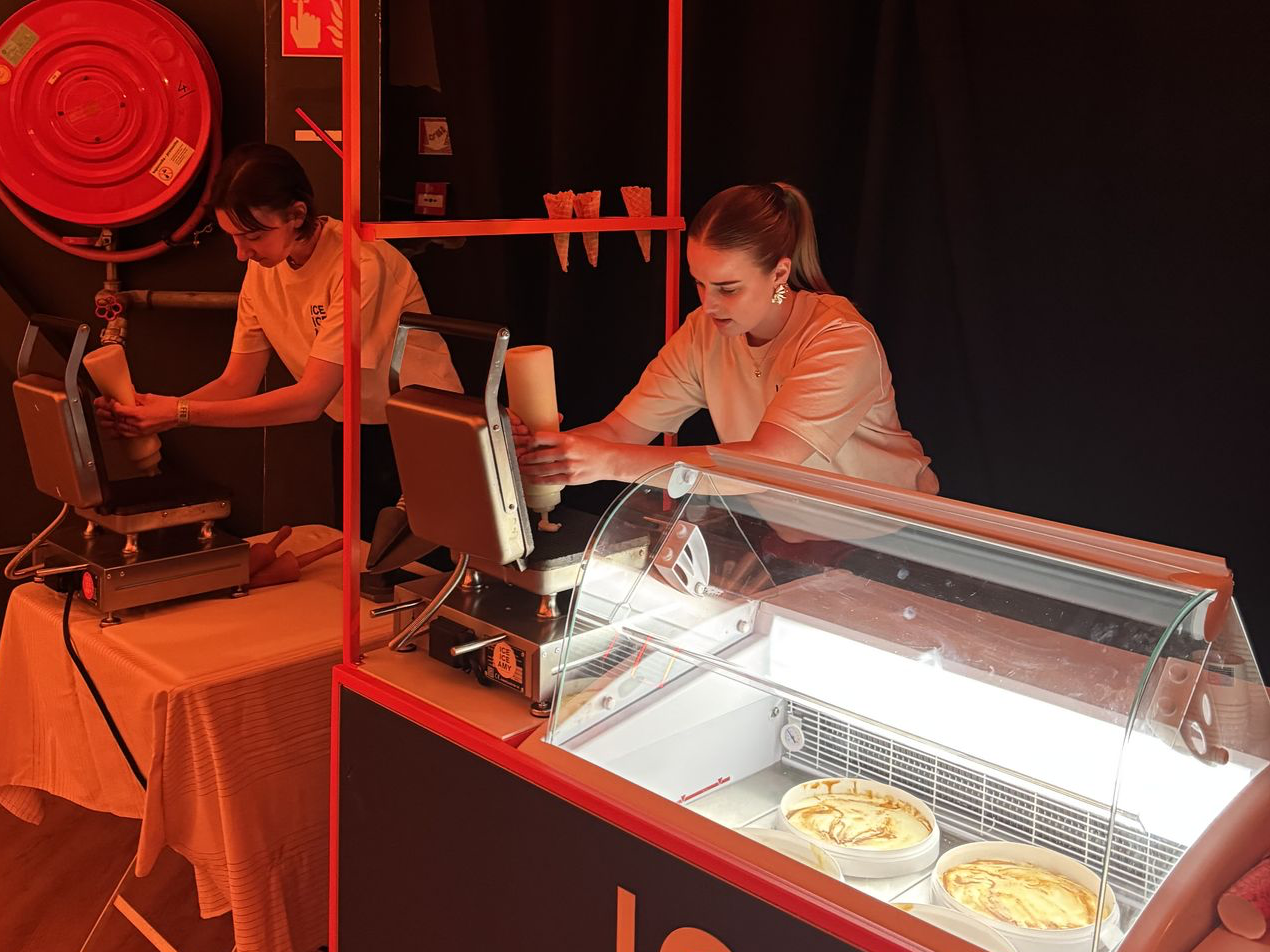 Dit is ICE ICE AMY op z’n leukst. We komen langs met onze ice cream cart én bakken de hoorntjes live op jouw event. Terwijl het ijs wordt geschept, rollen de hoorntjes warm uit het ijzer (ja, dat ruikt even goed als het klinkt).