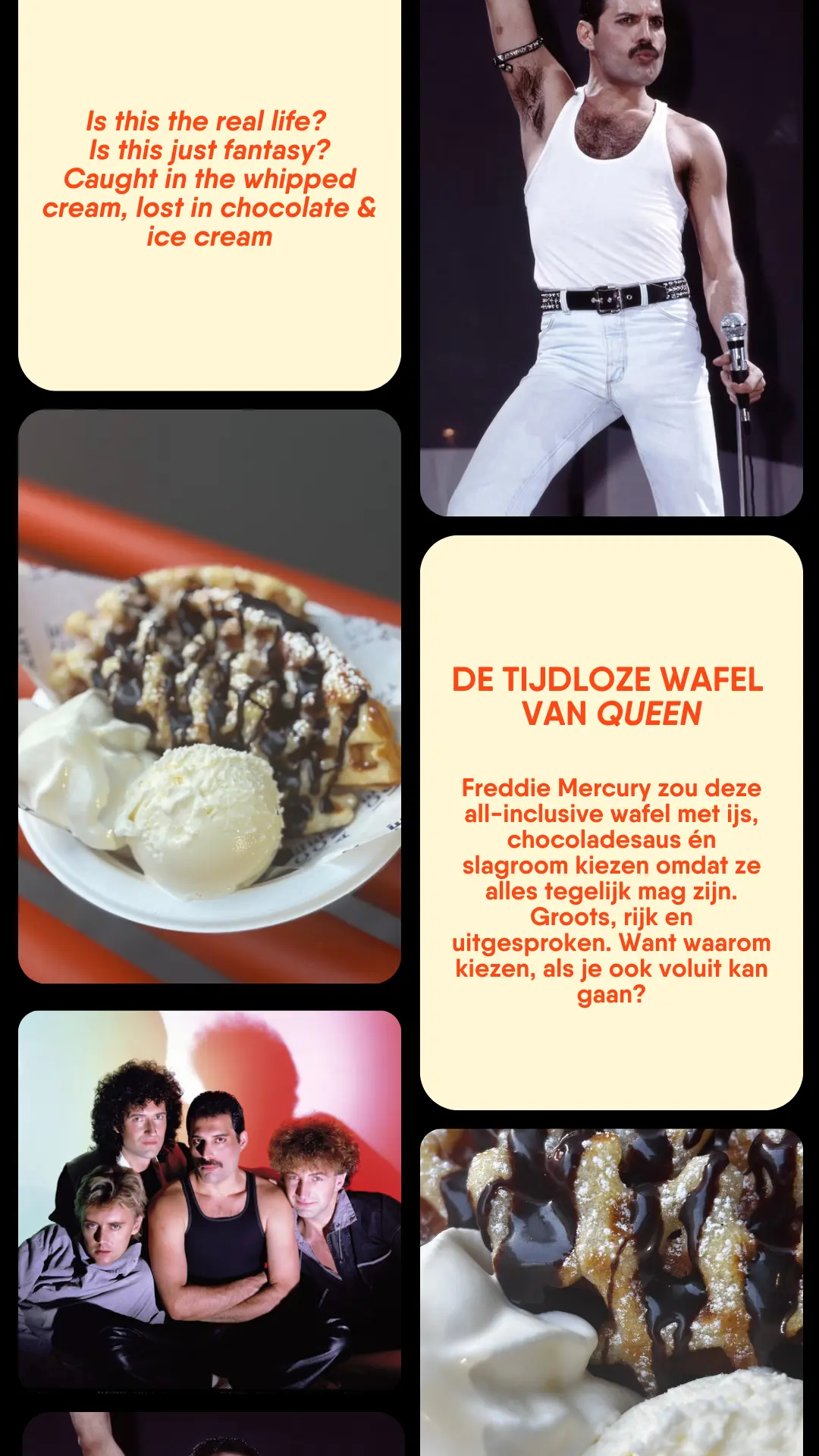 Aan elke wafel koppelden we ook een Tijdloze artiest, gebaseerd op persoonlijkheid en gevoel. Zo werd kiezen voor een wafel net zo persoonlijk als kiezen voor een nummer uit De Tijdloze.